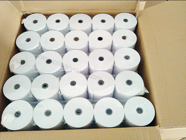 Ribbon is not needed. The thermal paper will show image automatically when the thermal printed of the machine reach the certain temperature.