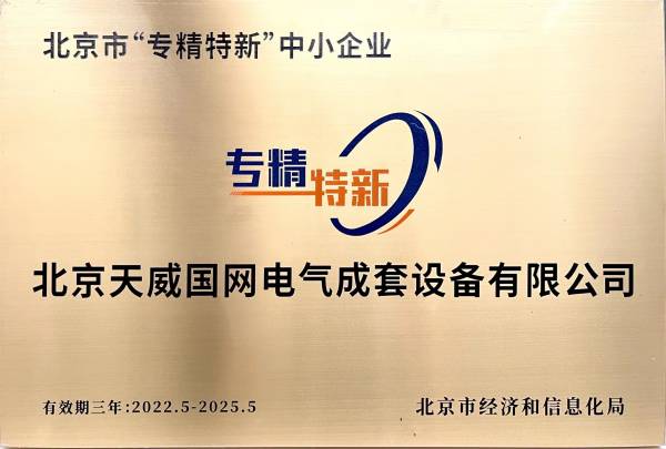 北京天威國(guó)網(wǎng)電氣公司獲北京市“專精特新”中小企業(yè)稱號(hào)